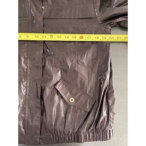 Chico’s 80’s Wet Look Brown Shiny Bomber Jacket Hooded 3/4 sleeve Size 1 / Med