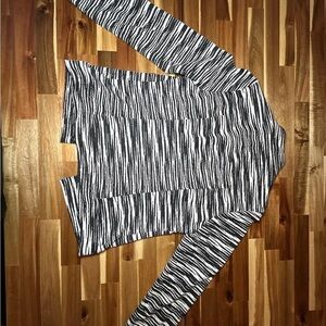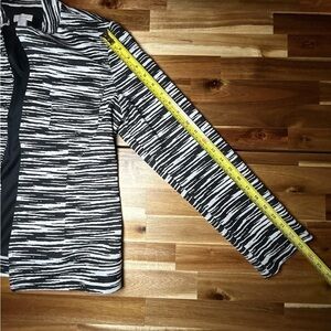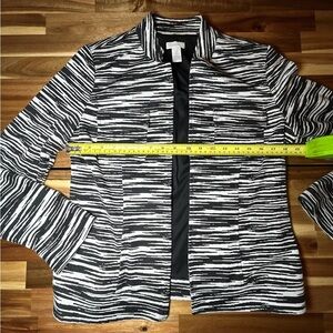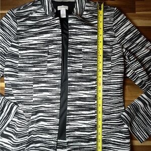 Chico’s Abstract Black White Striped Open Front Jacket Stretch Lined Sz 0 Sm 4