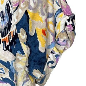 Chicos Abstract Paisley Dress Small Blue Yellow Short Sleeve Stretch