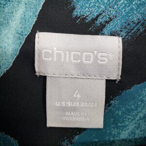 Chico's Abstract Print Button Down Blouse Top 20 Long Sleeve Blue Black