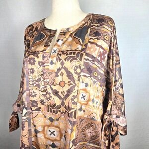Chico's Abstract Print Lightweight Split Neck Tunic Boho Brown Multi Size 3 XL