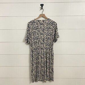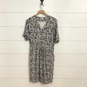 Chico's Abstract Print Stretchy Drawstring Waist Midi Dress w/Pockets, Size 8/10