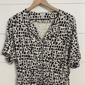 Chicos Stretchy Drawstring Abstract Graphic Print Midi Dress w/Pockets , Women's Size 8/10