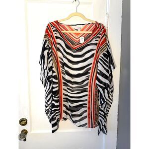 Chico's Abstract Zebra Sheer Poncho Tunic Beach Swim Cover Up Zebra Print