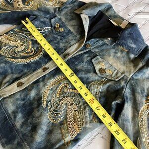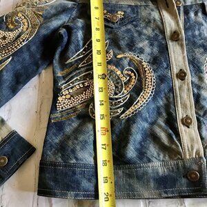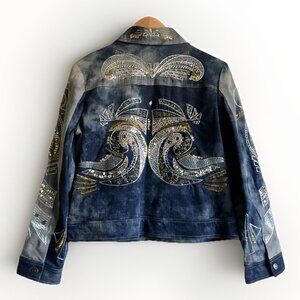 Chico’s Acid Washed Denim Jean Jacket Embroidered Sequin Embellished - Women’s 1