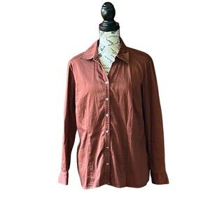 Chicos Additions Brown Button Up Long Sleeve Casual Rodeo Preppy Blouse 2 L