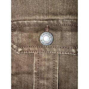 Chicos Additions Brown Button-Front Military-Style Jacket Size 3 Cotton Blend