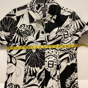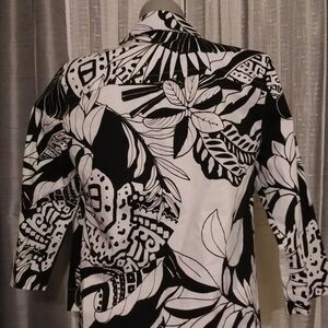 chicos Additions Black & White Floral Print Button down Closure Size 1 Pre owned in great condition