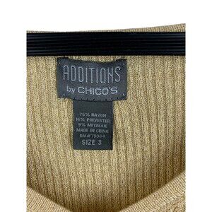 Chicos Additions Womens Ribbed Metallic Knit Sweater Size S Beige