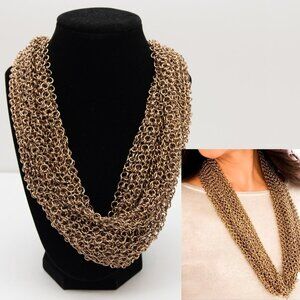 Chico's Ambrosia Necklace Chainmail Bib Metal Scarf Gold New