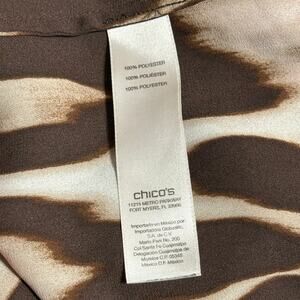 This sale is for one (1) Chico's animal print blouse/tunic, size 2. The blouse is black and brown in color with an orange bottom.