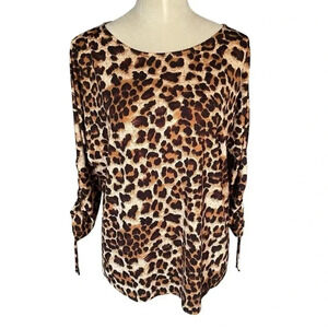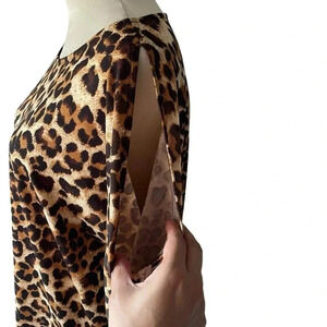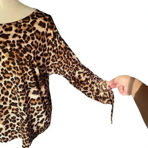 Chico’s Animal Print Cheetah Slit Sleeves Lightweight Sexy Bold Top Women Size M