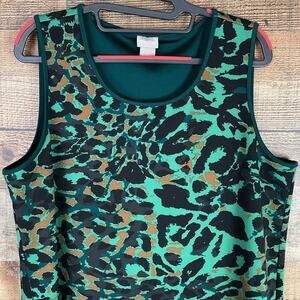 Chico's Animal Print High-Low Hem Midi Dress Green Leopard Size 2 Large 12 14