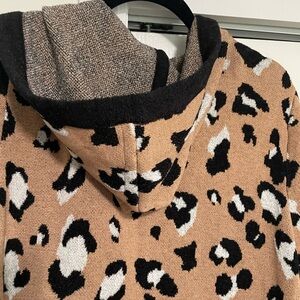 Chico's Animal Print Hooded Close Front Cardigan Duster Size 3 or XL 16