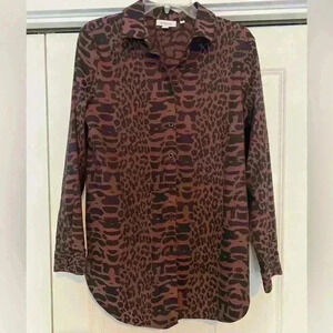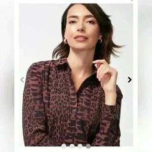 Chicos Animal Print Long Sleeve Tunic Top Button Down