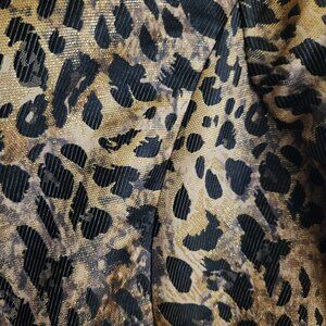 Chico's Animal Print Metallic Jacket, Size 2(L). Pit to pit 22", shoulder to hem 32", 3/4 Cuff Sleeves, Collared, Button Closure, Patch Front Pockets, Fully Lined. Like New Condition, Pre-Owned