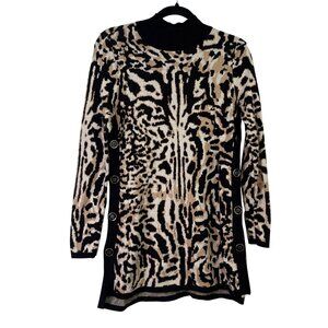 Chicos Animal Print Mock Neck Cashmere Blend Tunic Sweater With Side Buttons Siz