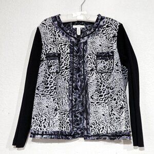 Chico's Animal Print Open Front Jacket Textured Mixed Fabrics White