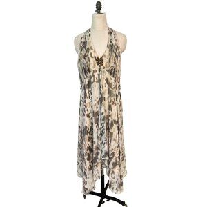 Chicos Animal Print Sleeveless Halter Dress W/ Beaded Accent size 3.5 XL