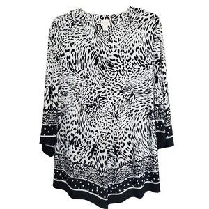 Chico's Animal Print Stretchy Flared Sleeve V-Neck Tunic Size 2 Large
