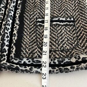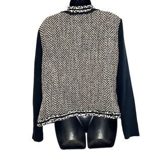 Chico’s Animal Print Tweed Chevron Bone Wool Blend Cardigan Black White Medium