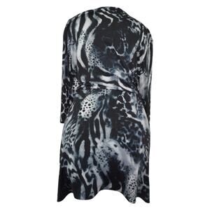 Chico’s Animal Print Wrap Dress Black Gray Long Sleeve Mini Size 1 Medium
