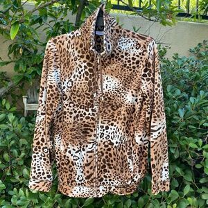 Chico’s Animal Print Zip Up Velour Jacket/Sweatshirt Small/Medium (1) EUC!