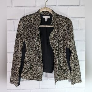 Super cute black and animal print open blazer with exposed zip pockets by Chico's.