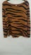 Chico's Tiger Striped Scoop Neck Long Sleeved Stretch Knit Pullover Sweater in Golden Brown and Black. Very Minimal Signs of Wear include a Small Pull on Right Shoulder. Ready to Style!