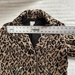 Chico’s Animal-Print Jacquard Moto Jacket Womens 0P, US 4/6P Faux Leather Trim