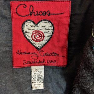 Chicos Anniversary Collection Black Wool Beaded Embroidered Floral Jacket size 1