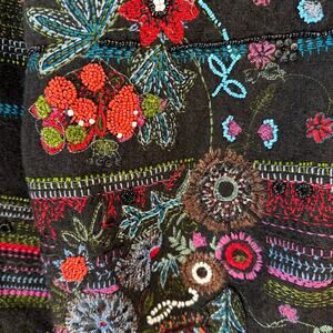 Chico's Anniversary Collection Floral Jacket Women's Sz 1 Black Wool Beaded