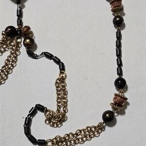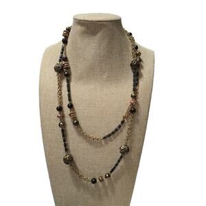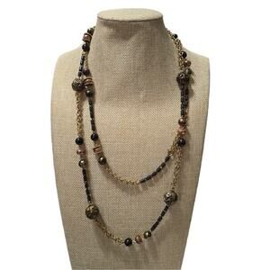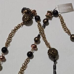 Chico's Antique Gold and Black Ball Multi Strand Long Necklace New!