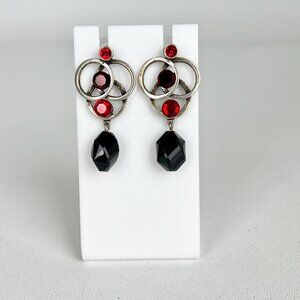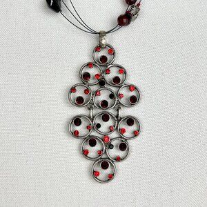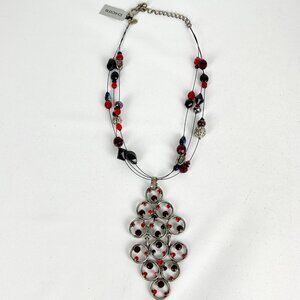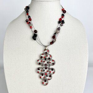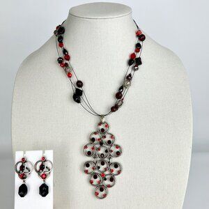 Chicos Antique Silver Red Black Pendant Necklace Earrings Matching Set