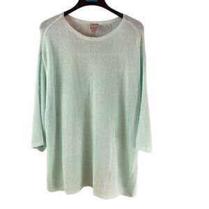 Chico's Aqua Lightweight Acrylic/Nylon Blend Sweater Size 3 XL 3/4 Sleeve