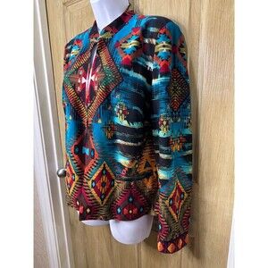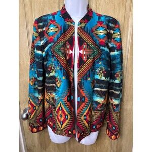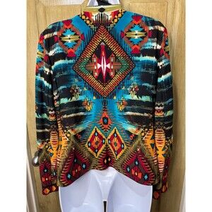 Chicos Art Southwest Aztec Bold Open Front Cardigan Jacket Size 1 NWOT Medium