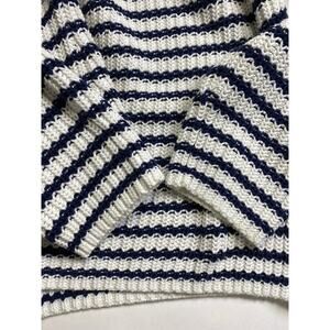 Chicos Ashlyn Striped Pullover Sweater Size L 2 Navy Nautical Flattering Ruched