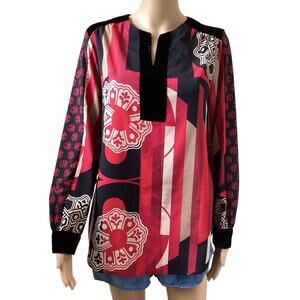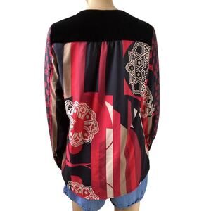 Chico's Asian Art to Wear Velvet Trim long sleeve Blouse size 0 (small)