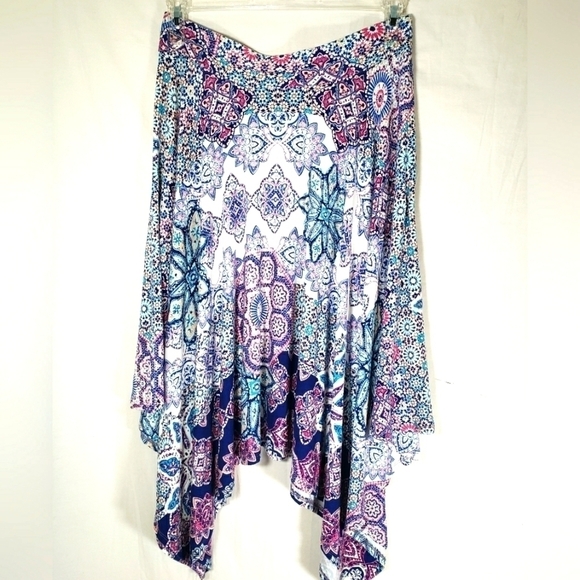 Chico's Asymetrical Multicolored Artsey Bohemian Skirt Sz Chicos 1P/SP