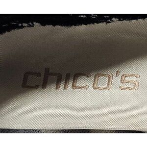 Chicos Asymmetrical Midi Skirt Womens Size Large Black White Striped Stretchy