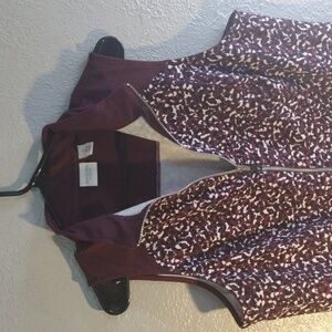 Chicos Athletic Maroon Cheetah Print Zip up Vest 2/L. Great Condition