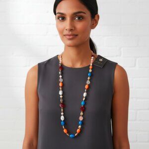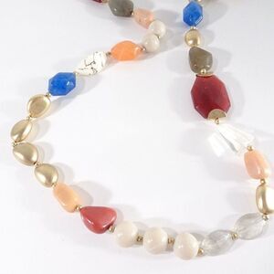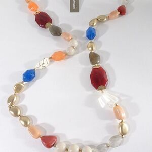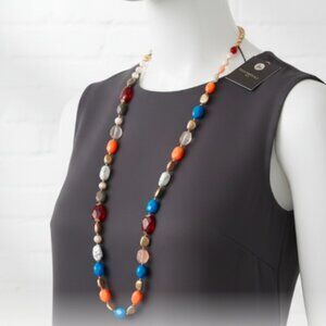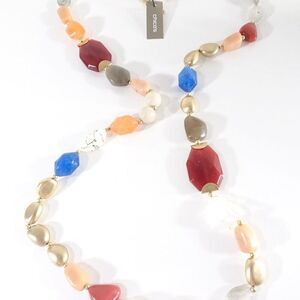 Chico's Austyn Rainbow Colorful Gold Stone Rainbow Gemstone Long Necklace NWT 60