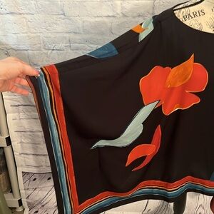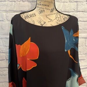 Chico’s Autumn Floral Top Poncho Black Size Large/XL Caftan Flowy