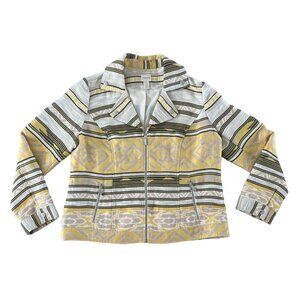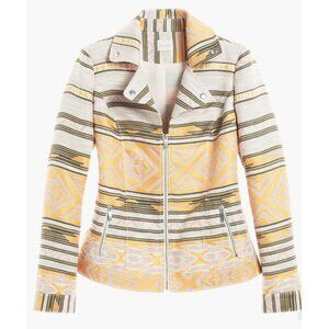 Chico’s Aztec Jacquard Moto Jacket Yellow Southwest Zip Lined Size 1 Medium $139