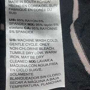 Chico's elegant black STRIP SHIFT, T SHIRT DRESS, QUARTER LENGTH SLEEVES, KNEE LENGTH, ROUND NECK, 95% RAYON AND 5% SPANDEX.