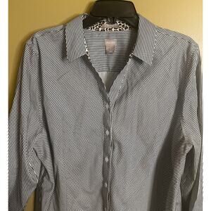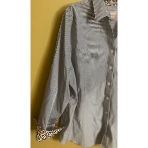 Chico's B&W Stripe with Leopard Trim Button Up Blouse Size 16