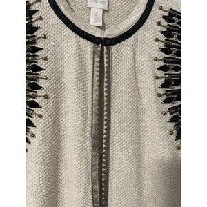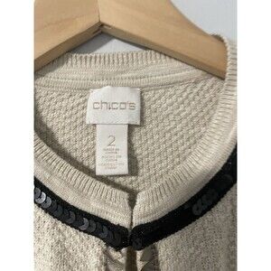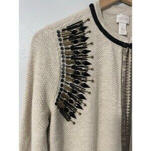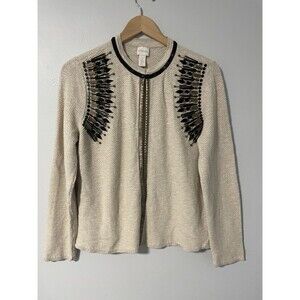 Chico's Beaded Beige Seed Stitch Cardigan Size 2 L 12/14