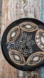 Chico's silver tone beaded belt, oval vegan leather camel color sections with cream, brown and pewter tone beading, large lobster claw clasp. A beautiful belt in wonderful pre-loved condition, please see photos for measurements and details.