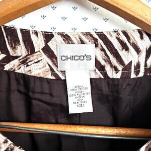 Chicos Beaded Dinner Jacket. Tan and brown. Beaded neckline. Lined. Excellent condition. Size chicos 1 = large.