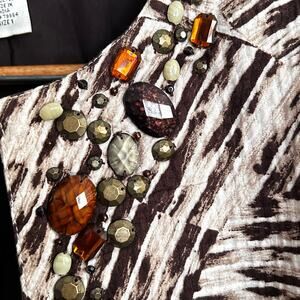 Chicos Beaded Dinner Jacket L 1 Brown Tan Resort Cruise Cocktail Holiday Glam